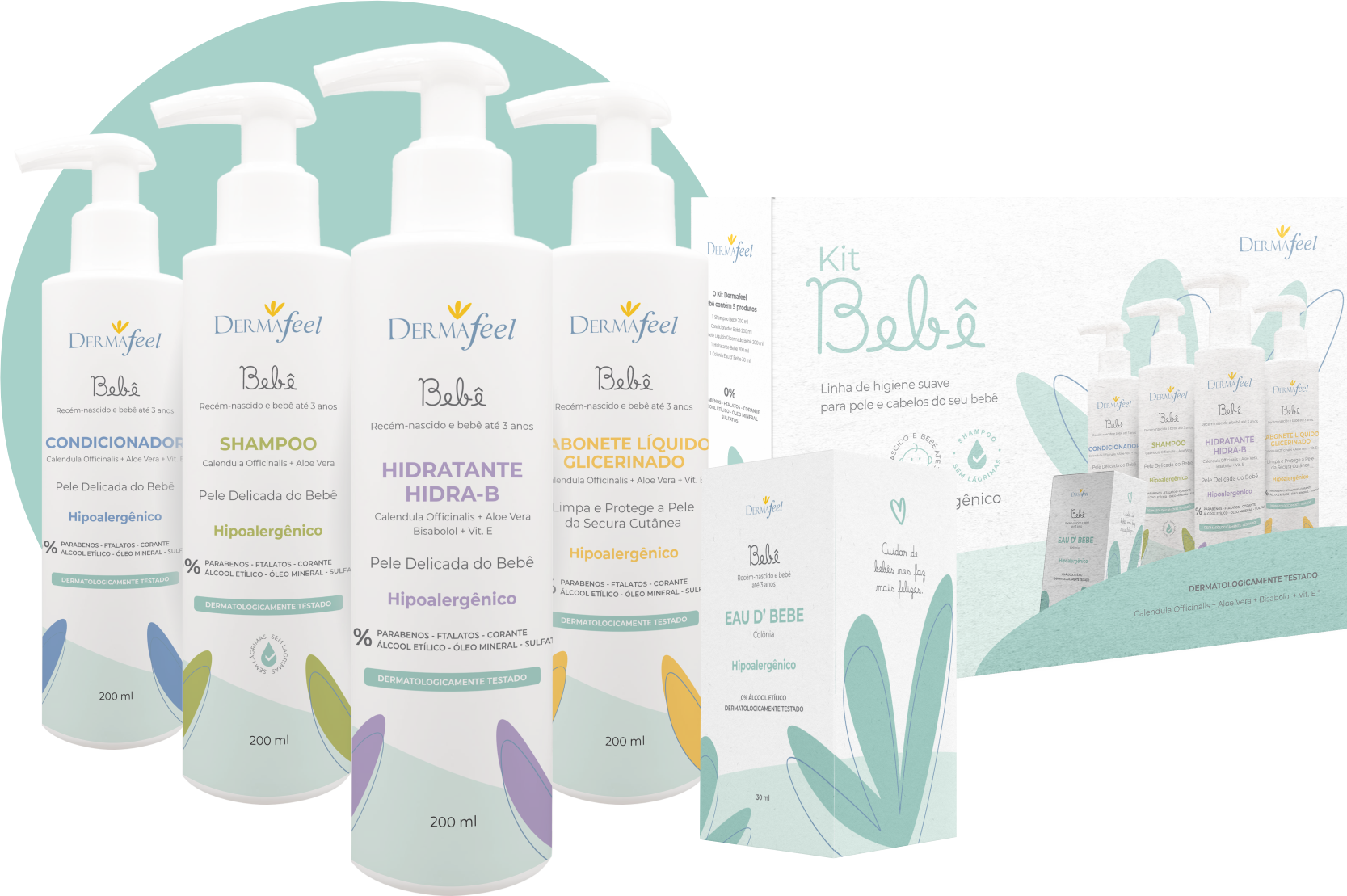 A Dermafeel nasceu do desejo de oferecer o que há de mais seguro e delicado para a pele de recém nascido e bebês até 3 anos. Entendemos que o cuidado nos primeiros anos de vida é fundamental, e por isso, cada um de nossos produtos é desenvolvido com fórmulas hipoalergênicas, dermatologicamente testadas e livres de componentes irritantes. Nossa missão é proporcionar tranquilidade para pais e mães, garantindo que cada banho, hidratação e momento de higiene e cuidado seja uma experiência de puro carinho.